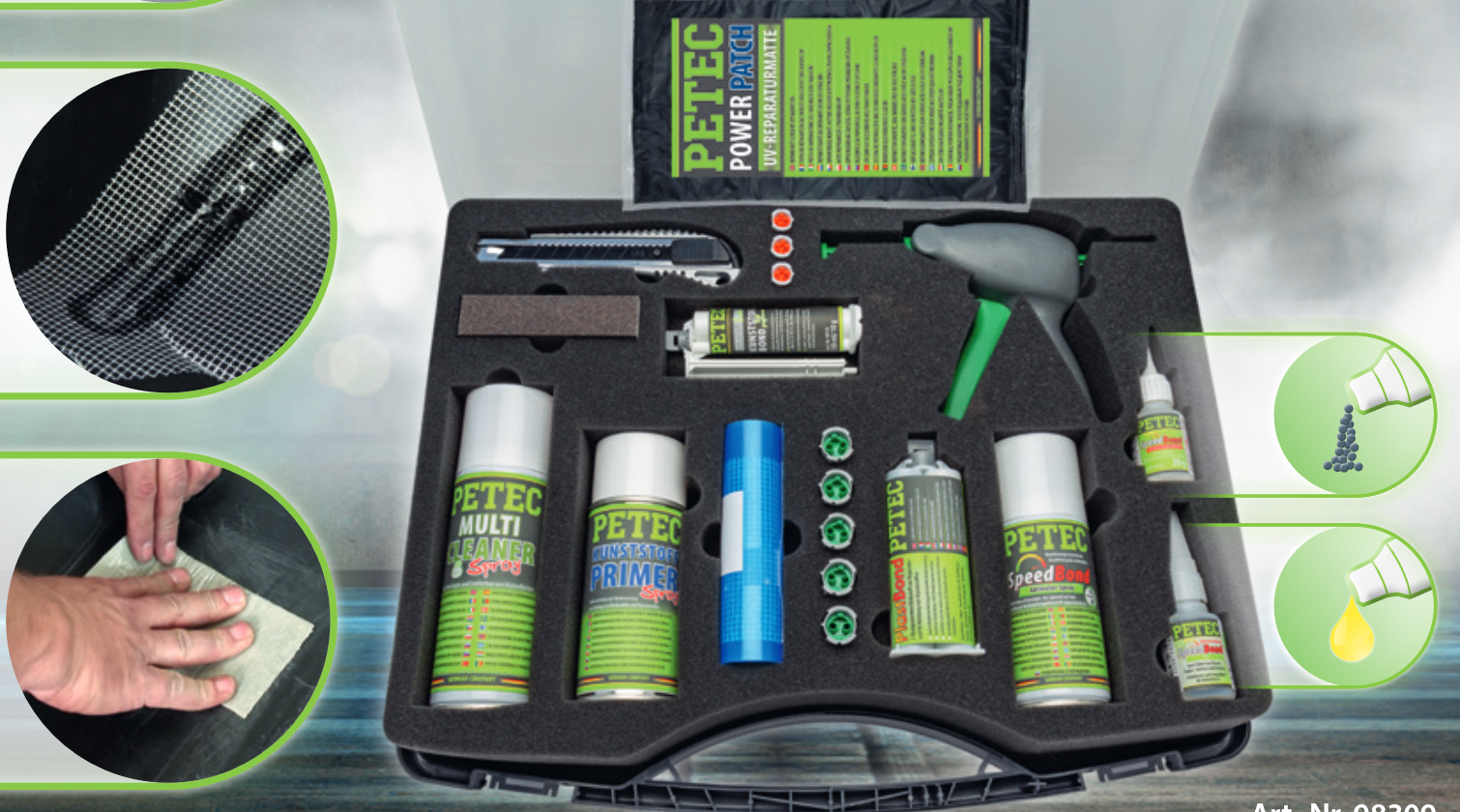 Wem ist es nicht schon so gegangen, dass er ein Kunststoffteil reparieren wollte, jedoch nicht den passenden Klebstoff zur Hand hatte? Dieses Problem lässt sich mit dem Kunststoff Repair Kit von Petec leicht lösen. Im Koffer sind alle relevanten Klebstoffe enthalten, um eine professionelle Kunststoffreparatur durchzuführen. Die Anwender schätzen, dass man mit einem Griff alles zur Hand hat und man so den Überblick behält. Und da die technische Innovation ständig weitergeht, hat Petec das Repair Kit aktuell überarbeitet und den Inhalt auf die aktuellen Anforderungen bei Kunststoffreparaturen angepasst.