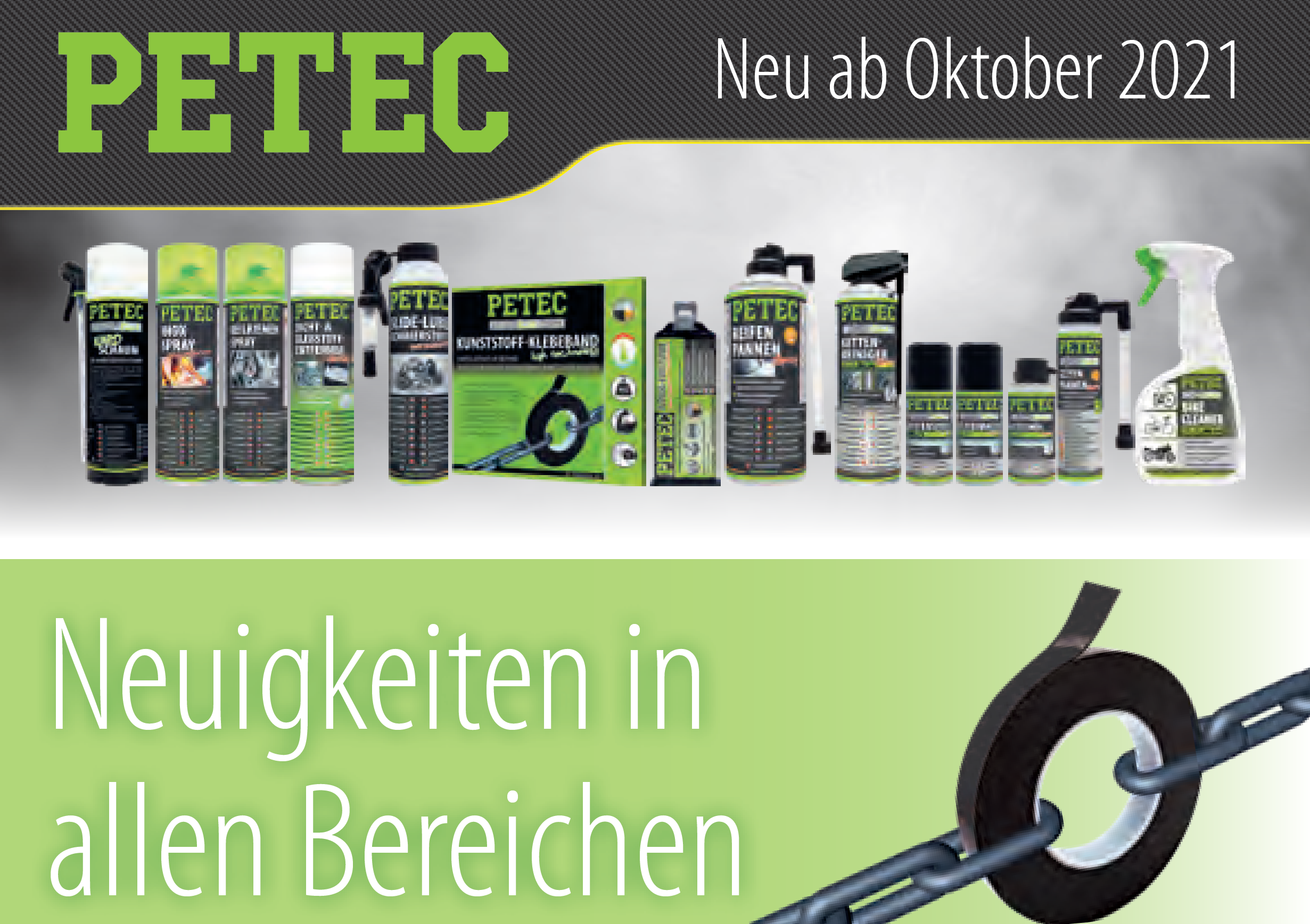 Zusätzlich zu diesen Neuerungen wird PETEC künftig auch die Pflege und Wartung von Fahrrädern, Motorrädern sowie ähnlichen Zwei- und Vierrädern begleiten. Zu seiner neuen Produktkategorie „Bike Line“ und den ersten Artikeln aus diesem Segment will der Hersteller in Kürze weitere Details bekanntgeben.