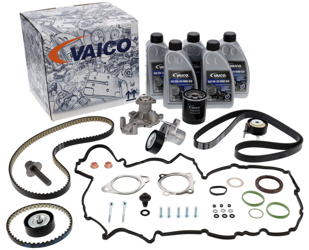 VAICO bietet einen speziell entwickelten Zahnriemensatz für den 1.0 EcoBoost. Das EXPERT KITS+-Set enthält alle erforderlichen Teile, inklusive Zahnriemen, Spann- und Umlenkrollen, Dichtungen und Schrauben. Ölresistente Materialien und eine durchdachte Zusammenstellung sorgen für eine sichere und wirtschaftliche Reparatur und schützen den Motor, den Ölkreislauf und die Werkstattkunden zuverlässig.